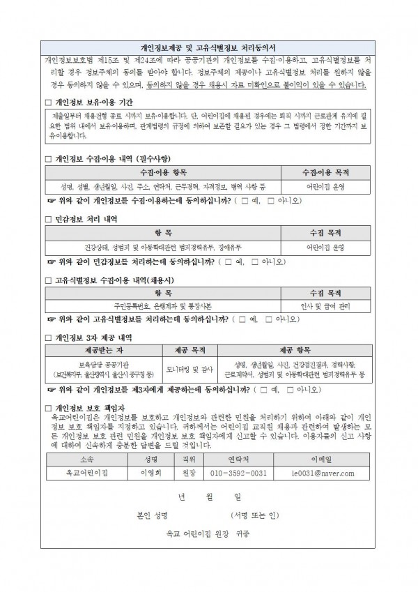 개인정보제공 및 고유식별정보 처리동의서.hwp
