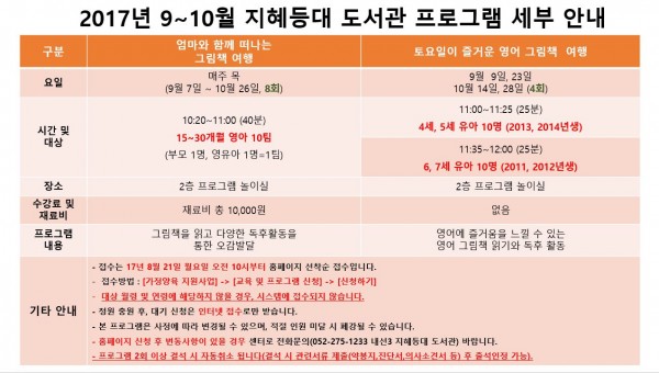 2017년 9~10월 지혜등대도서관 프로그램 안내