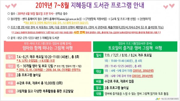 * 문의사항 052)275-1233 내선 3 지혜등대도서관 / 운영요원 김민희