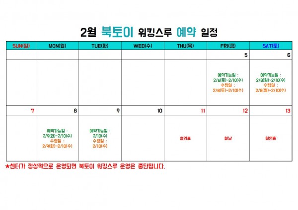 2월 13일(토) | 설연휴 | |||||||