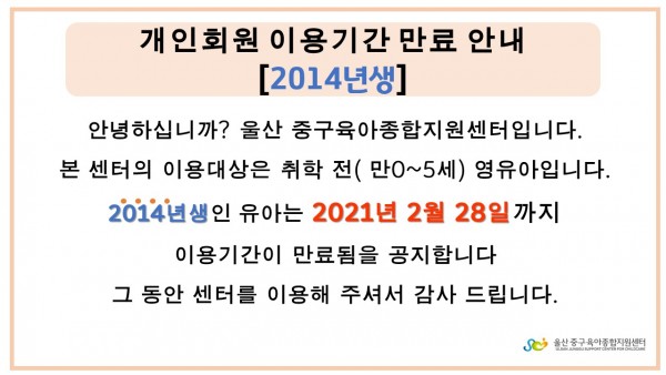 [가정양육] 개인회원 이용기간 만료 안내(2014년생)
