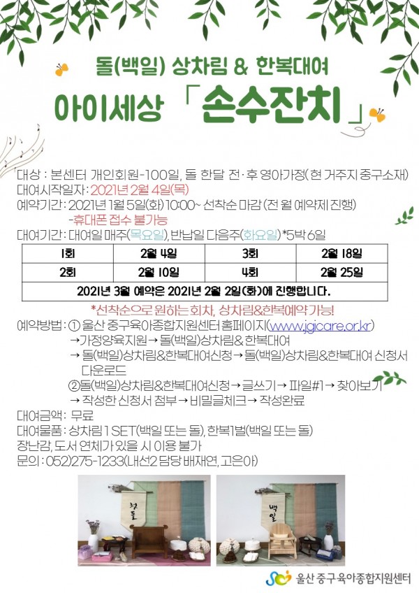 돌(백일) 상차림 & 한복 대여 및 장소대관 아이세상「손수잔치」