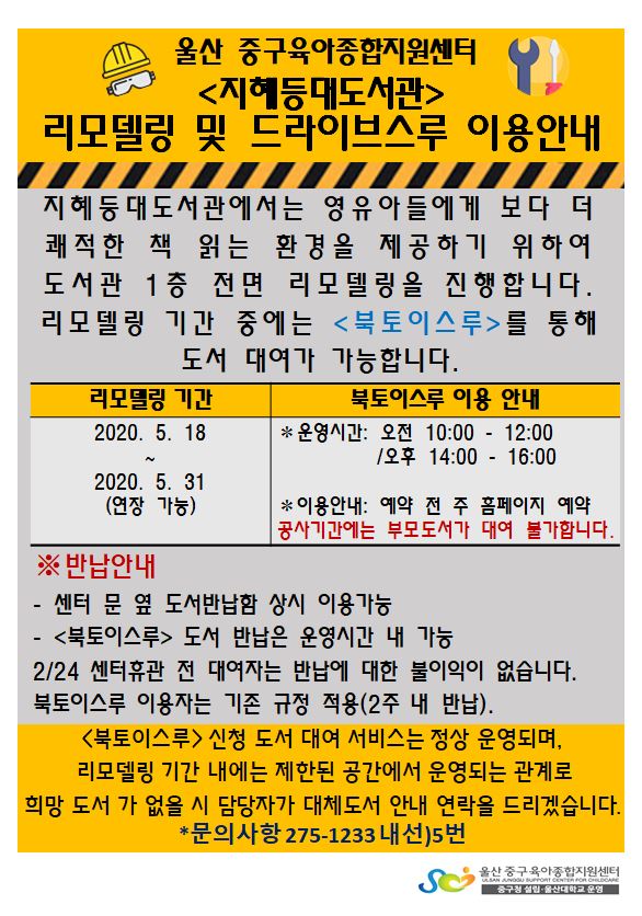 ★★★<지혜등대도서관> 리모델링 및 북토이 드라이브스루 운영안내★★★