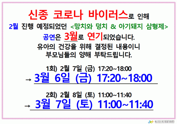 2월 진행 예정이었던 <망치와 덩치&아기돼지 삼형제> 공연은