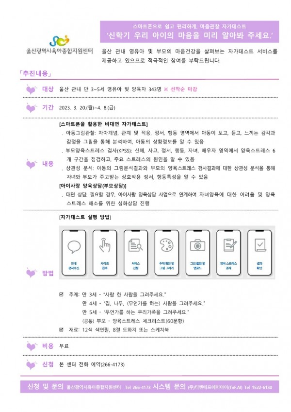 ♡ 울산광역시육아종합지원센터 스마트폰 마음관찰 자가테스트(신학기 우리 아이의 마음을 미리 알아봐 주세요) 사업 홍보♡
