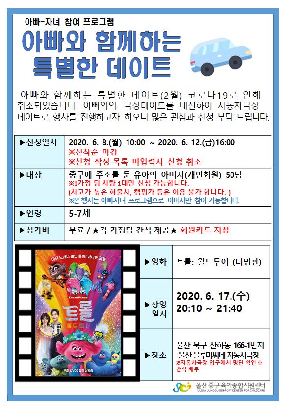중구에 주소를 둔 유아의 아버지 (센터 개인회원)만 신청 가능합니다.