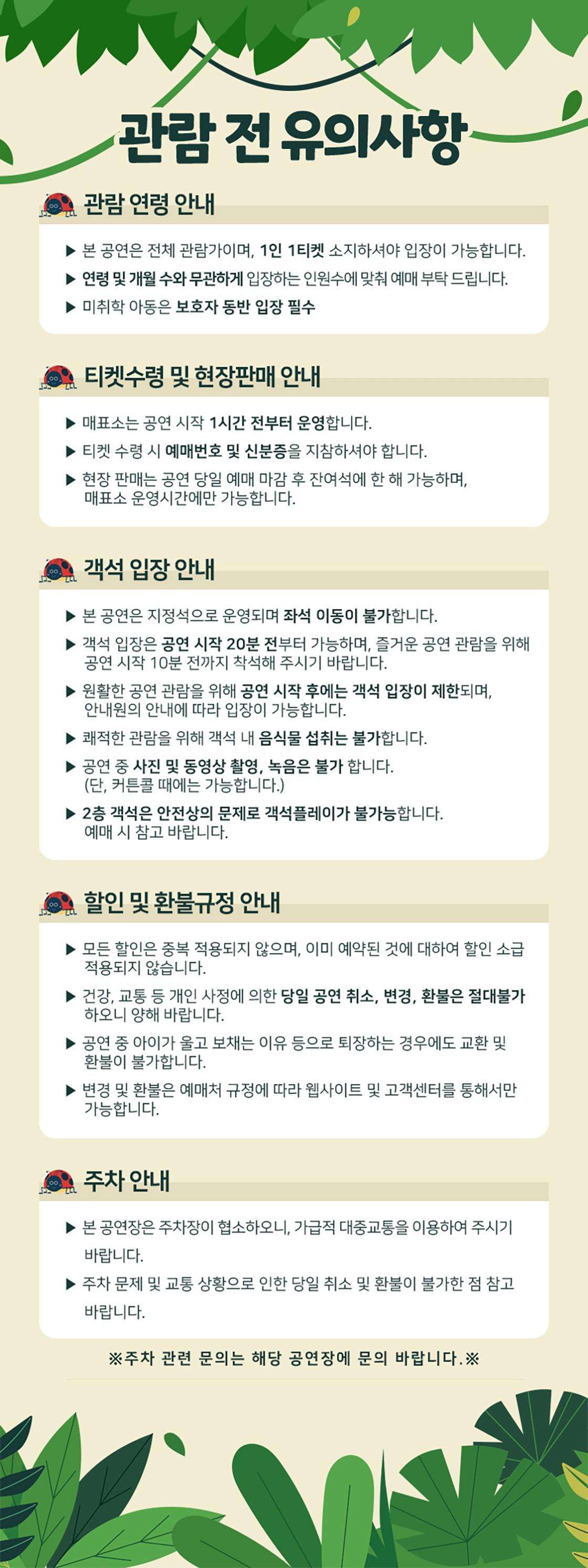 | 공연 시간 | 토, 일 11:00, 14:00, 16:30 |