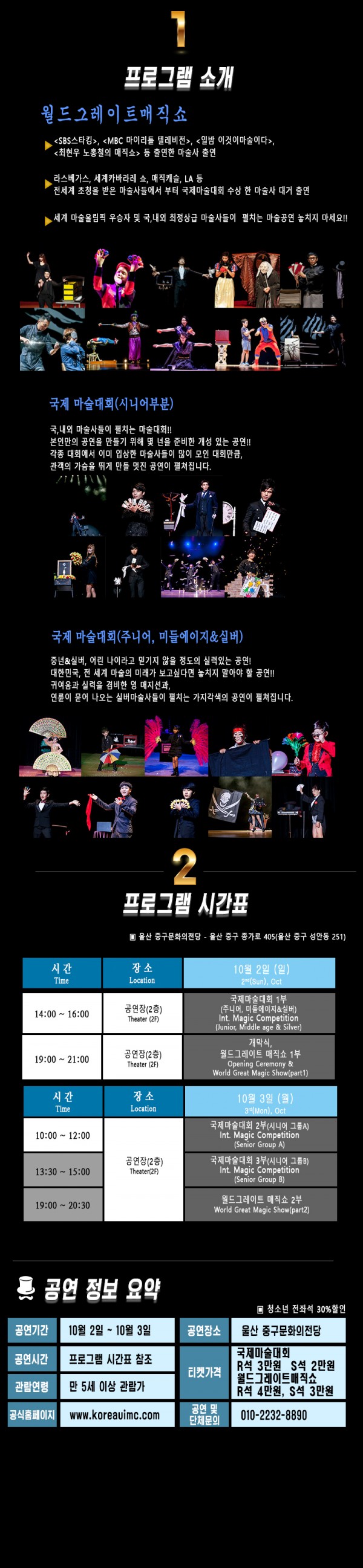 | 공연 문의 | 010-2232-8890(울산광역시 마술협회) |