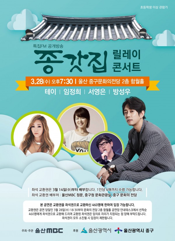 | 공연 제목 | <문화가있는날> 종갓집 릴레이 콘서트(테이, 임정희, 서영은, 방성우) |