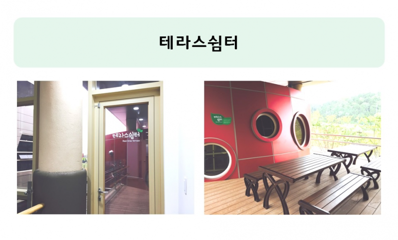 이용자들이 자유롭게 휴식을 취할 수 있는 테라스쉼터 공간입니다.