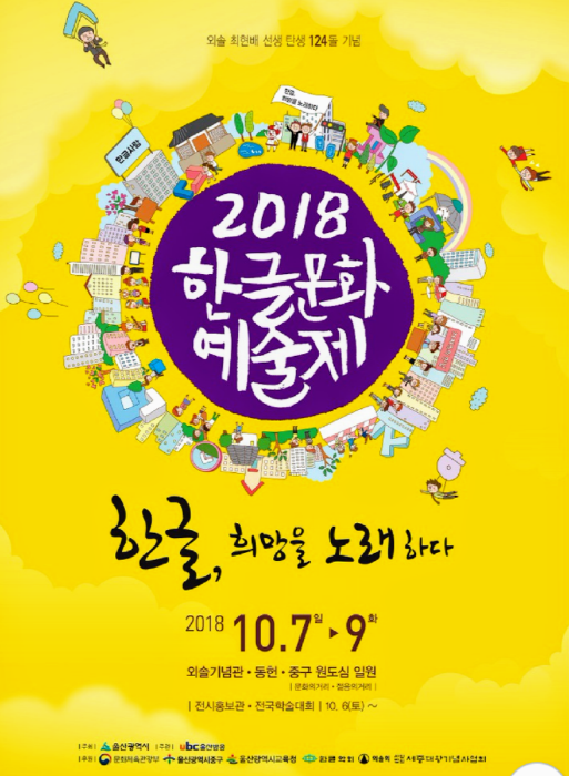<한글문화예술제>는 울산에서 열리는 한글축제로써 한글의 역사성과 전통성, 문학적 가치를 아우르는 시민참여형 예술제이다. 울산 중구 원도심 일원과 외솔기념관을 중심으로 개막식을 비롯하여 한글관련 다양한 공연, 체험, 전시, 학술, 전시,체험,공연,참여 프로그램이 준비되어 있다. 아름다운 한글과 울산 시민들을 더욱 가깝게 이어주는 의미 있는 예술제이다.