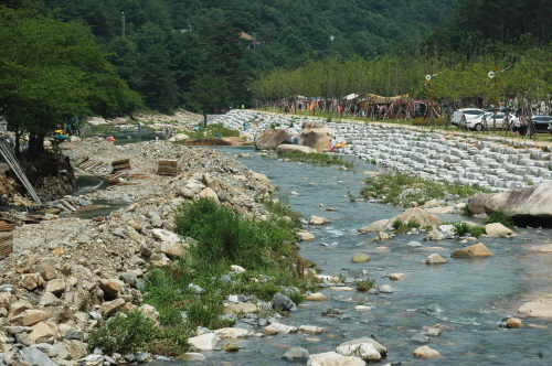 물줄기를 따라 작천정에서 조금 올라가다보니, 등억온천단지 표지판 직전에 최근에 새로 생긴 작천정 계곡 야영장이 있었습니다. 울산시 울주군에서 관리하는 작천정 별빛야영장인데요. 오픈한지 오래되지 않았지만 캠핑을 즐기는 많은 야영객들이 작천정 계곡을 찾고 있다고 합니다.