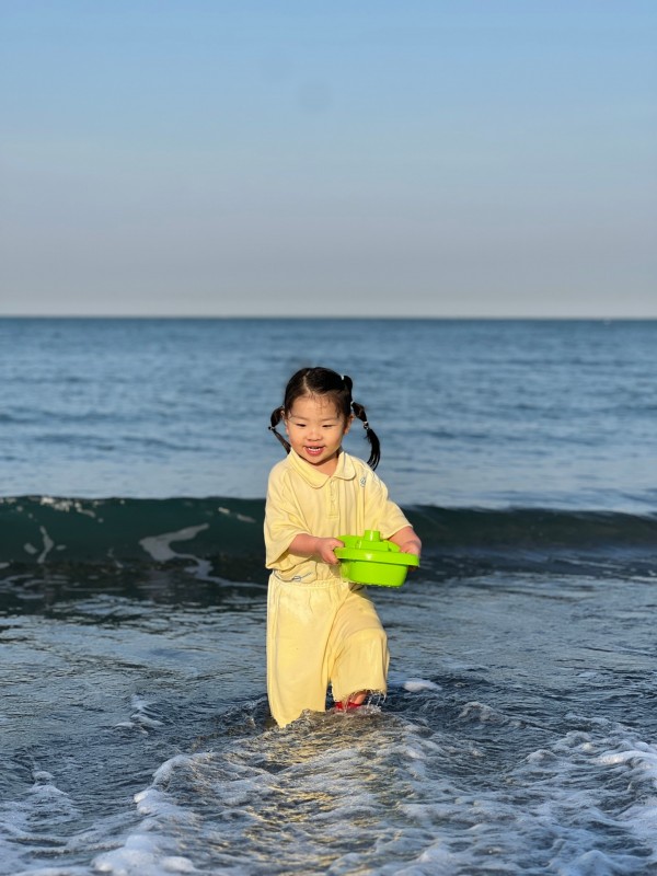 '소녀와 바다' - 강동 몽돌해변에서 아름다운 자연의 소리를 배경으로 신나게 노는 미소. 힐링되는 순간을 찰칵!