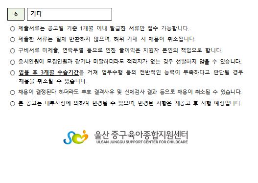 울산 중구육아종합지원센터 직원 채용(제2018-14호)