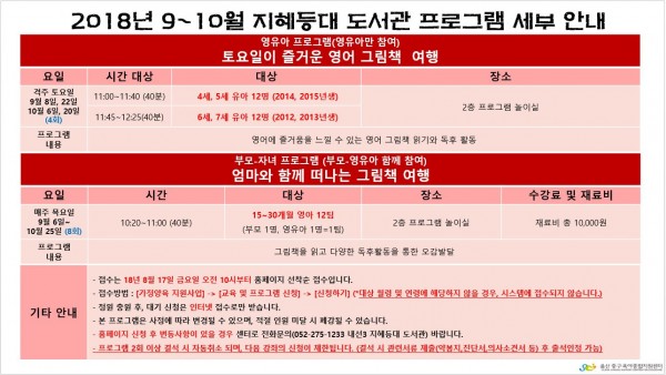 2018년 9~10월 지혜등대도서관 프로그램 안내