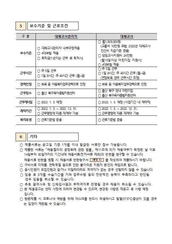[채용공고] 울산 북구육아종합지원센터 직원 채용 안내