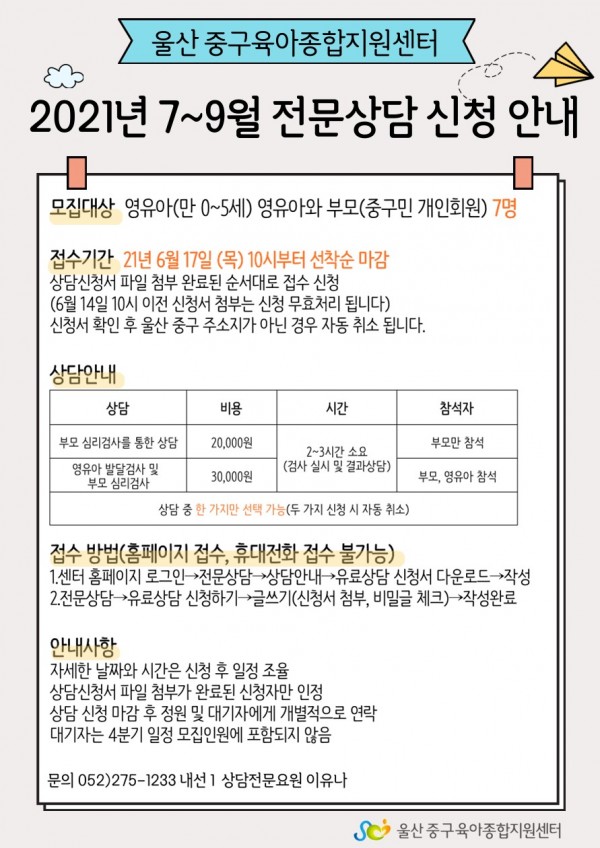 * 7~9월 진행 예정인 상담 신청을 받고 있습니다.