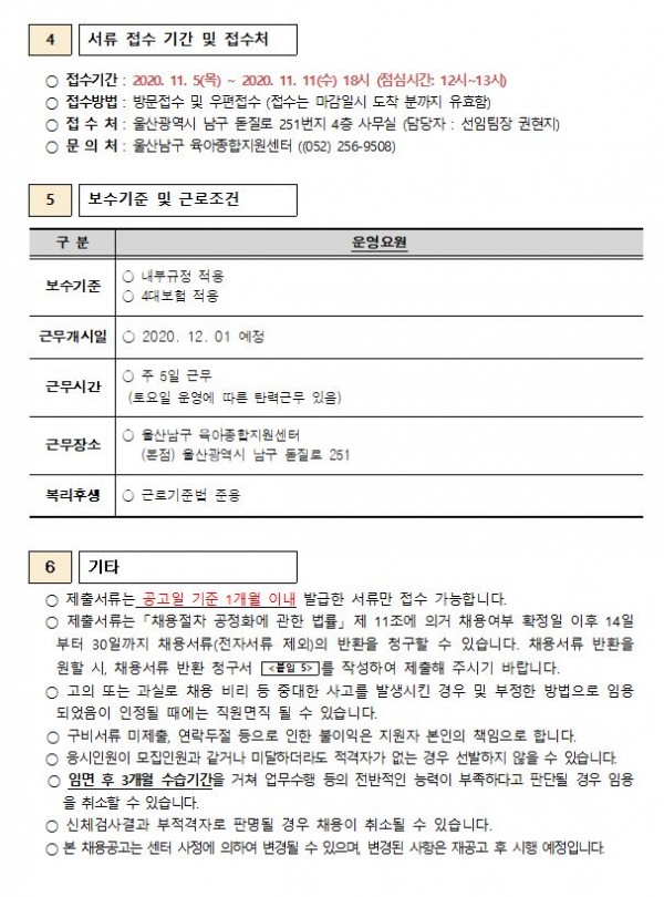 [채용공고] 울산남구 육아종합지원센터 직원 채용 재공고