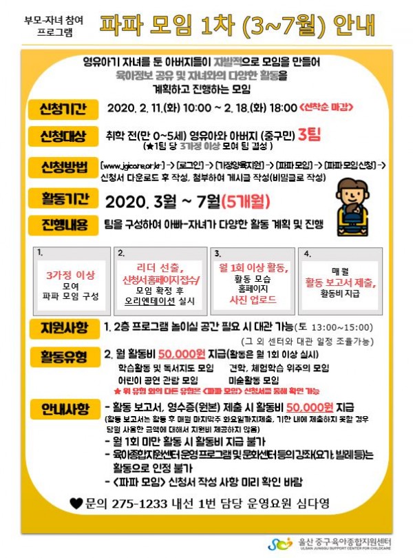 [가정양육]파파모임 1회차(3월~7월) 모집 안내