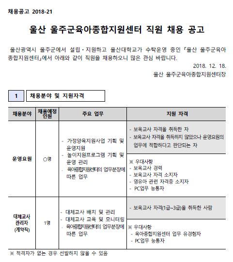 [채용안내] 울산 울주군육아종합지원센터 직원 채용 안내