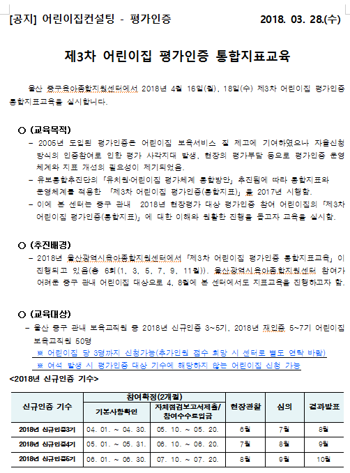 [어린이집] 어린이집컨설팅 - 평가인증 제3차 어린이집 평가인증 통합지표교육