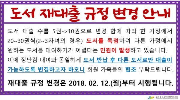[가정양육] 도서 재대출 규정 변경 안내