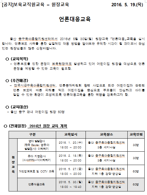 [어린이집] 보육교직원교육 - 원장교육 언론대응교육