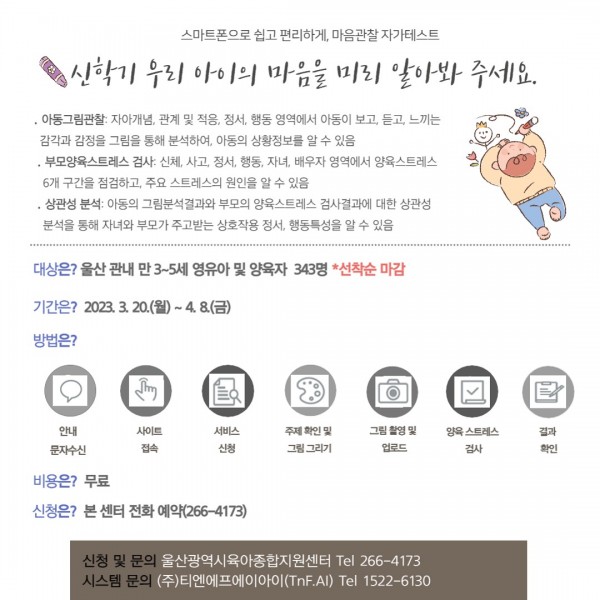 ♡ 울산광역시육아종합지원센터 스마트폰 마음관찰 자가테스트(신학기 우리 아이의 마음을 미리 알아봐 주세요) 사업 홍보♡
