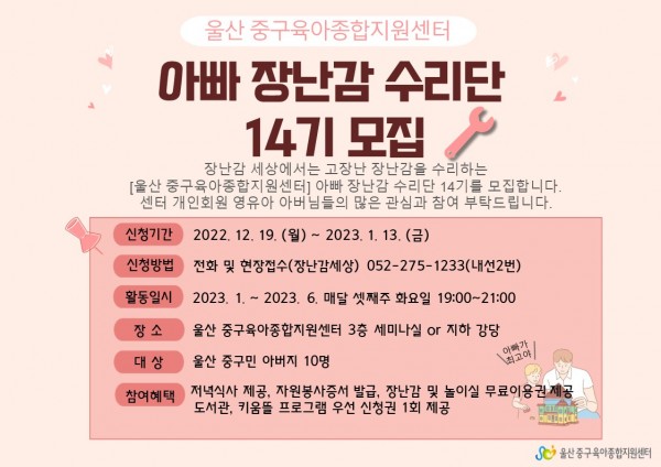 [가정양육] 울산 중구육아종합지원센터 아빠 장난감 수리단 14기 모집 안내 ♡