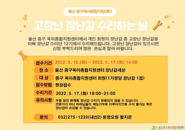 아빠 장난감 수리단에서 고장난 장난감을 수리해드립니다.