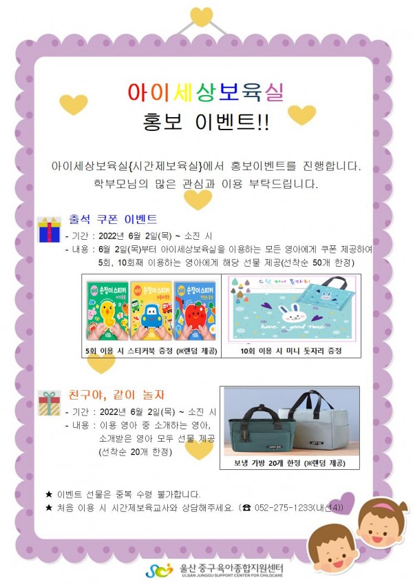 [가정양육] 아이세상보육실(시간제보육실) 홍보 이벤트!!