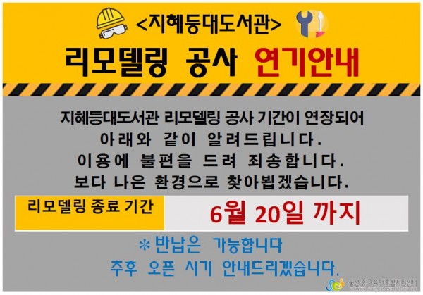 [가정양육] 지혜등대도서관 리모델링 공사 기간 연기안내