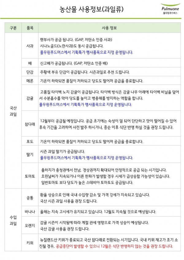 [풀무원 푸드머스] 12월 농산물 시황정보