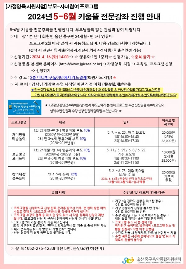 ♡ ​2024년 5-6월 <키움뜰 프로그램> 본 센터 2층 프로그램 놀이실에서 진행됩니다.