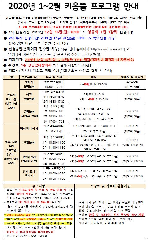 2020년 1~2월 키움뜰 음악놀이 수요일 1회 16:00~16:25 - 3세(18년생)