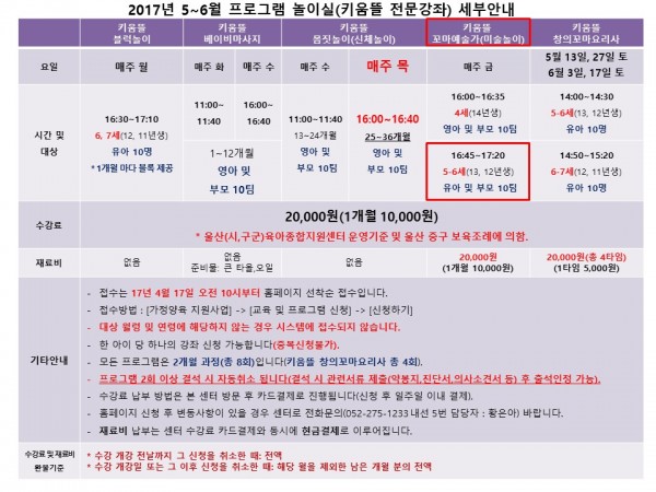 [프로그램 놀이실] 5~6월 키움뜰 꼬마예술가(16:45~17:20/5-6세(13,12년))