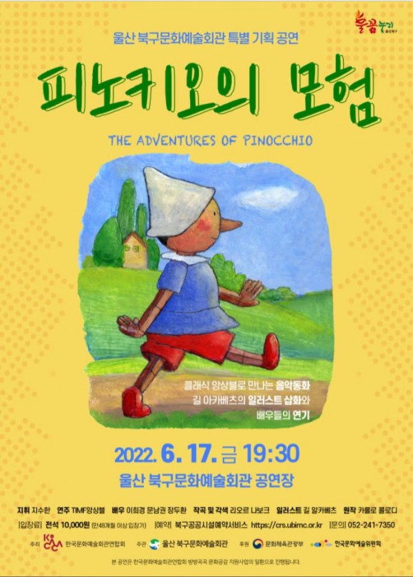 명작 동화 피노키오의 이야기에 붙여진 작곡가 '리오크 나보크'의 음악을 한국을 대표하는 클래식 앙상블 'TIMF 앙상블'이 연주합니다. 동시에 배우들이 피노키오 동화의 스토리를 육성으로 생생하게 연기하여 음악과 극을 함께 즐기는 융합 클래식 음악 공연입니다.