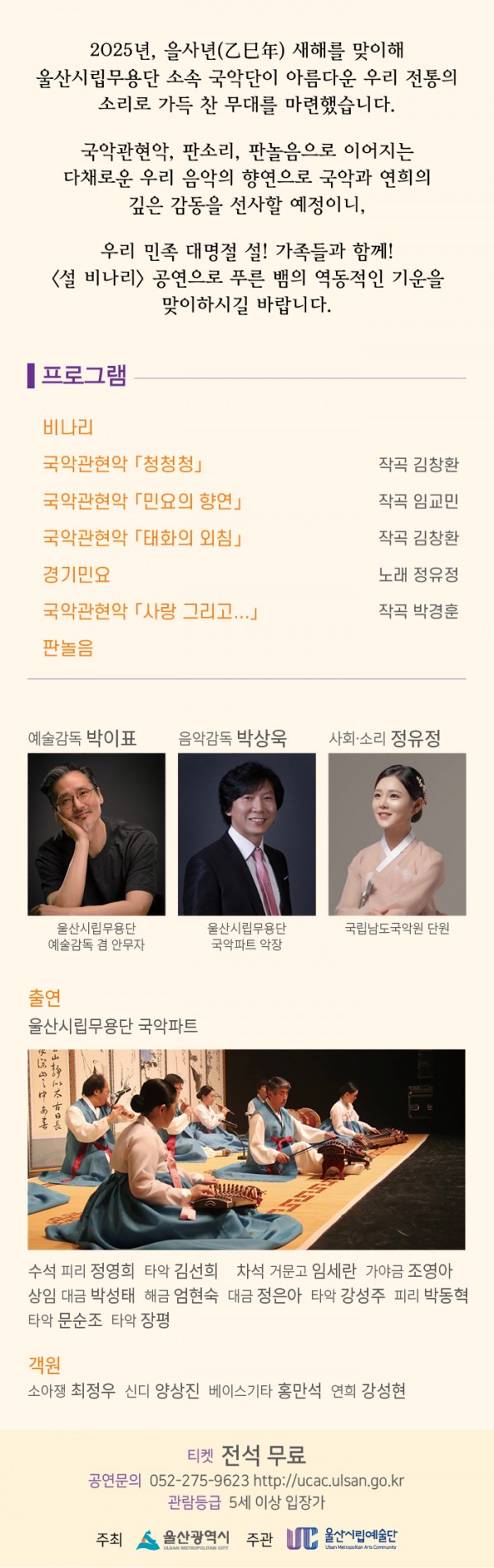 | 공연 제목 | 설 비나리- 국악으로 여는 새해 |