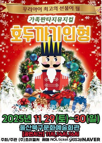 | 기타사항 | [공연안내] 2025년 11월 29일(토)~30일(일)토/일 11시, 14시, 16시 [부분 취소 안내] 본 공연은 부분 취소가 불가합니다. 부분 취소를 원하실 경우 예매 내역 전체 취소 후 재 예매만 가능합니다. 이점 양해 부탁드립니다. ---------------------------------------------------- - 현장예매는 공연당일 함시간전 온라인 마감후 현장에서 온라인과 같은 가격으로 예매 가능하십니다 - 24개월 이상 표를 구입합니다. - 본 공연은 가족모두가 함께 관람가능 합니다.(24개월 미만은 부모님 동반입장가능-증빙서류지참) - 공연중에는 사진촬영, 동영상촬영, 음식물 반입이 금지되어 있습니다. - 1인 1티켓 적용 (본 공연은 부모님과 자녀 모두 소지하셔야 합니다.) - 미취학 아동 단독 입장 불가 (본 공연은 안전한 관람을 위하여 성인보호자 동반없이 입장 불가 합니다.) - 당일 변경 및 취소 불가 (공연당일 현장에서의 취소, 변경, 환불은 불가하며, 개인사정, 공연 중 울고보채는 아이로 퇴장하는 경우에도 환불은 불가합니다.) - 주차비 무료이오나 주말 주차장소가 협소한점 참고 바랍니다. |