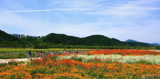 봄꽃이 만개하여 꽃 바다를 이루며, 단일 규모로는 전국 최대 수변 초화단지이다.