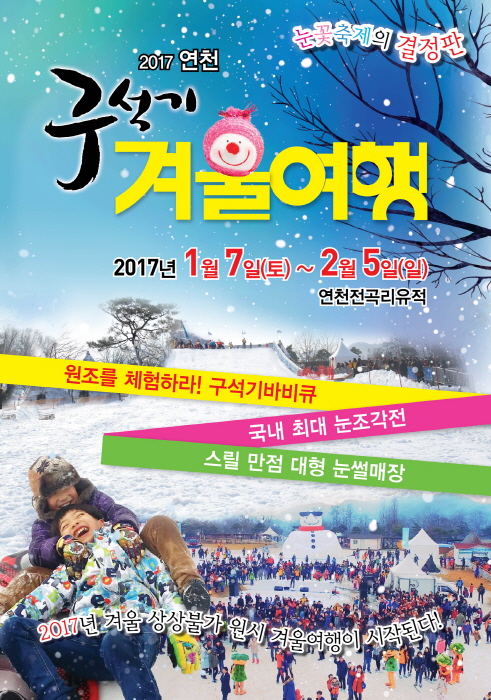 1978년 겨울 한탄강 유원지에 놀러왔던 미군 병사에 의해 지표에서 석기가 발견되면서 주목받게 된 이유적지는 우리나라 구석기 유적을 대표하게 된 연천 전곡리 유적에서 겨울행사가 진행된다. 빙하시대 구석기인들의 생활상을 보고 체험할 수 있는 <연천 구석기 겨울여행>행사는 1월 7일부터 2월 5일까지 진행된다.
