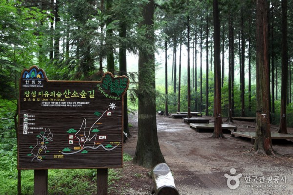 해발 621.6미터의 축령산은 전남 장성군 서삼면과 전북 고창군 고수면의 경계를 이루는 산으로 노령산맥의 지맥을 이루며 내장산, 방장산과 이어져 있다. 장성쪽에서 축령산이라 부르는 이 산은 전북 고창쪽에서는 문수산이라고 부르기도 하는데, 장성군 서삼면에 위치한 축령산 남서쪽 산록은 유럽풍의 잘 조림된 침엽수림으로 매우 유명하다. 삼나무, 편백, 낙엽송, 리기다소나무 등 수령 5~50년생의 숲이 널찍하게 바다를 이루고 있으며 주변엔 천연림인 상수리, 졸참나무, 떡갈나무 등이 둘러싸고 있는데 축령산이 세상에 알려진 것은 산을 두르고 있는 숲 덕분으로, 숲을 배경으로 영화 ‘태백산맥’, ‘내마음의 풍금’과 드라마 ‘왕초’도 촬영되었으며, 건강을 중시하는 현대인들의 산림욕 명소로 많은 분들이 찾아오고 있다.