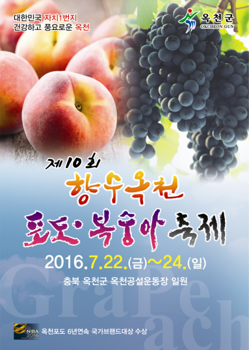 충북 옥천은 대한민국 시설포도 주산단지이다. 일조량이 풍부하고 주야간 일교차가 커 탐스러운 포도가 대량 생산되고, 2016년 국가브랜드 포도부문 대상을 수상하였다. 대청호반 기름진 땅에서 재배되는 옥천 복숭아는 맛이 달고 향이 그윽하여 소비자의 인기를 독차지 하고 있다. 앞으로 고향을 생각나게 하는 옥천의 명품 포도·복숭아를 주제로 소비자에게 가까이 다가갈 것이다.