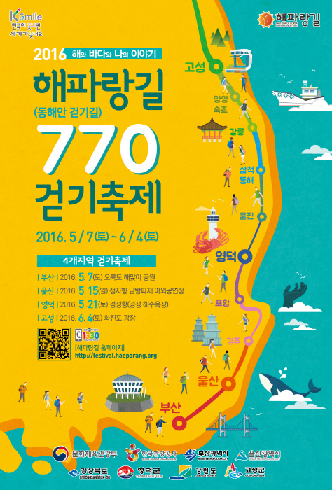 해파랑길은 문화체육관광부, 한국관광공사, 19개 지방자치단체가 함께 흩어져 있던 길을 하나로 연결한 국내 최장거리 탐방로로서 동해의떠오르는 해와 푸른 바다를 길동무 삼아 함께 걷는다는 뜻으로 부산광역시 오륙도해맞이공원을 시작으로 강원도 고성 통일전망대에 이르는 초광역 걷기 길이다. 2016년 5월7일 부산오륙도 해맞이공원에서 해파랑길 공식개통식, 이음단 출범식을 진행, 부산, 울산, 영덕, 고성 등 총 4개지역 걷기축제(개통행사)와 770km 해파랑길을 종주하는 이음단이 함께하는 걷기축제이다.