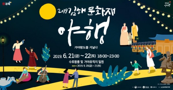 <2019 김해문화재야행>이 6월 21일부터 22일, 9월 21일부터 22일 두 차례 김해수로왕릉 일대에서 열린다. 이번 행사는 가야문화해설 탐방, 전통문화 체험과 공연, 푸드‧플리마켓 등 결합한 축제다. 계절별 색다른 정취를 느낄 수 있도록 초여름(상반기 야행)과 가을(하반기 야행)로 나뉘어 진행되며 더욱 풍성한 콘테츠로 볼거리를 가득 채울 예정이다.