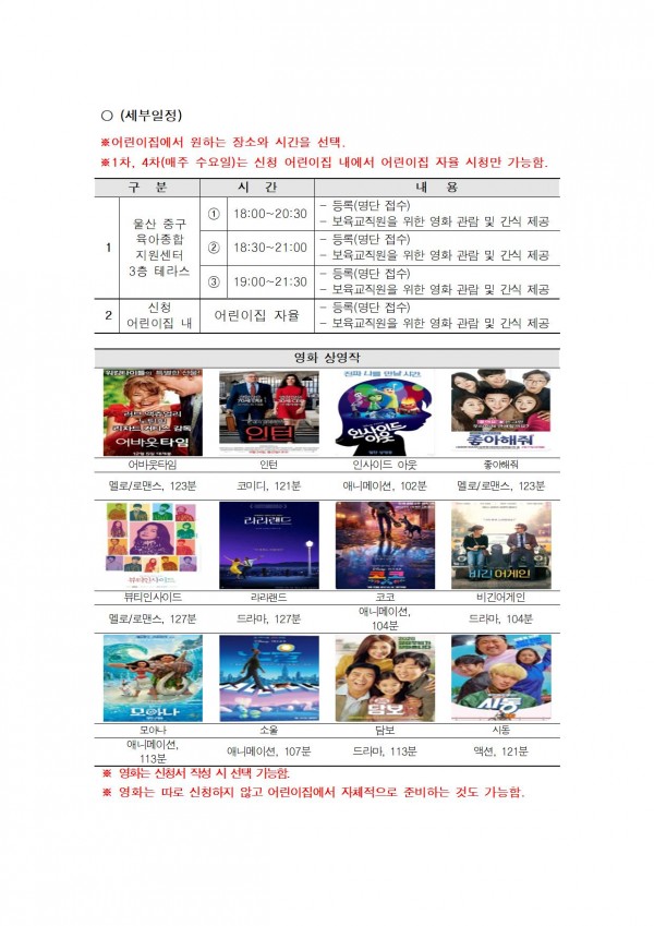 ※영화는 어린이집에서 자체적으로 준비하여 시청하는 방법도 가능합니다.