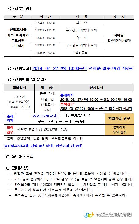 본 교육은 2017년 신입교사 부모상담 교육과 동일하게 진행될 예정입니다.