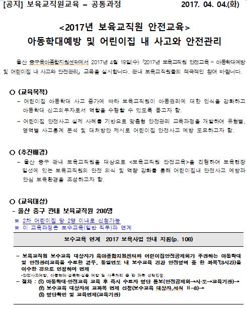 | 첨부파일 | [공지]2017년 보육교직원 안전교육 2차4.19..pdf (286.2K) |