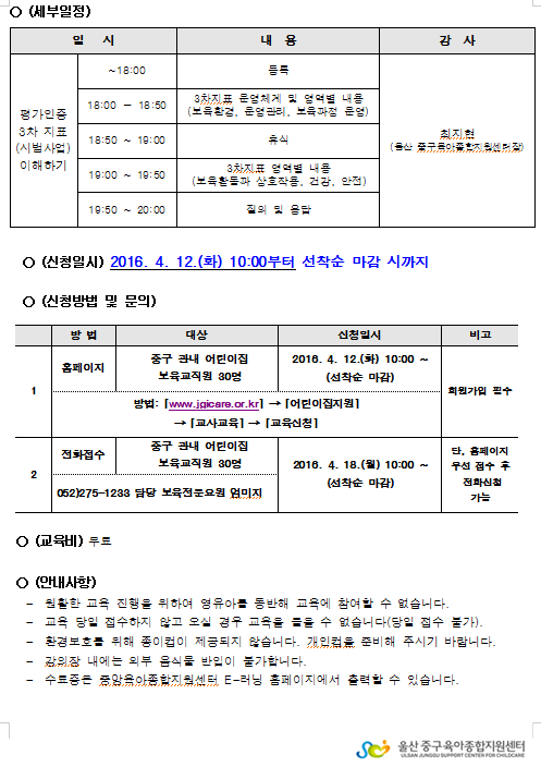 | 장소 | 울산 중구육아종합지원센터 3층 세미나실 |